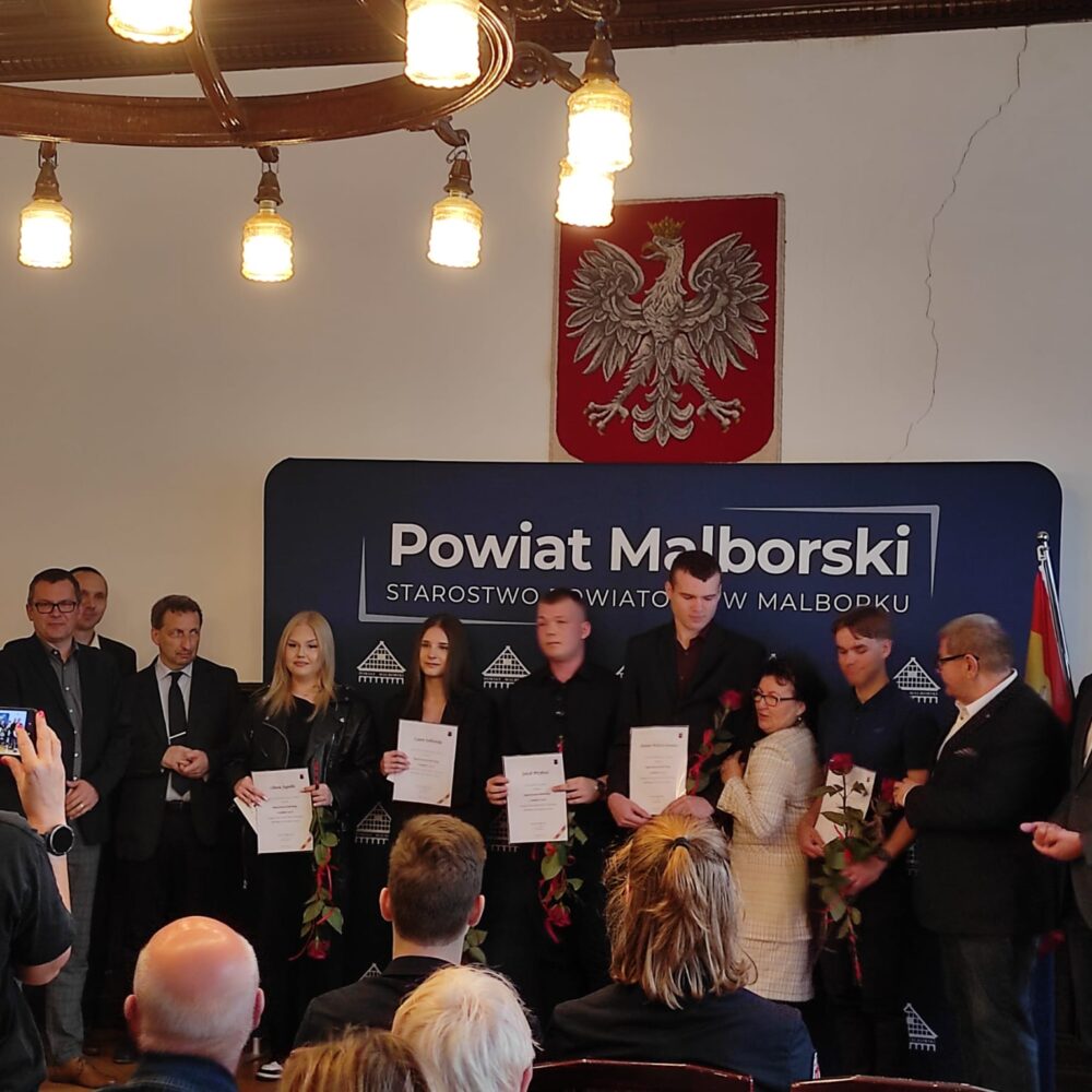 Dnia 16.09.2025 roku uczniowie ZST w Malborku mieli zaszczyt uczestniczyć w uroczystej gali wręczenia nagród Starosty Powiatu Malborskiego. Wyróżnienia przyznane zostały w uznaniu za szczególne osiągnięcia oraz w rozwój pasji i talentów.
